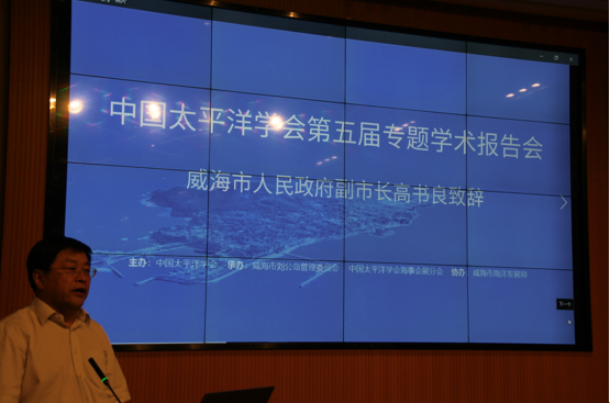 中国太平洋学会会长张宏声、山东省海洋局局长宋继宝,威海市副市长高书良出席活动开幕式并致辞。报告会由中国太平洋学会副会长兼秘书长、自然资源部海洋出版社副社长李正楼主持。
