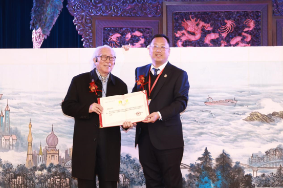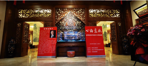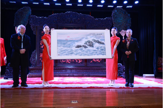 中国紫檀博物馆陈丽华馆长向艺术基金捐赠了作品《东风起苍海,松鹤迎朝阳》。该作品是陈丽华馆长在2021年与宋明远先生携手联袂创作。宋明远先生向陈丽华馆长颁发了艺术基金荣誉顾问证书。